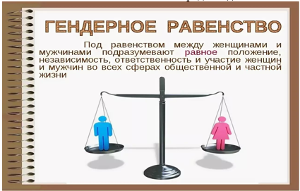 Гендерное равенство – это равный правовой статус женщин и мужчин и равные возможности для его реализации, позволяющие лицам независимо от пола, свободно использовать свои способности для участия в политической, экономической, социальной, общественной и культурной сферах. Значимость этой задачи подтверждается включением обязательства, особенности которого прописаны в нормативных актах ООН, предусматривают, что народы отдельно взятых стран должны пересмотреть «устаревшие» ценности и взгляды. Реализация гендерной политики в Республике Беларусь базируется на правовых, организационных, административных основах гендерного равенства. Осуществление принципа равноправия обеспечивается предоставлением женщинам равных с мужчинами возможностей в получении образования и профессиональной подготовки, реализации права на труд и вознаграждение за него, общественно-политической и культурной деятельности, а также специальными мерами по охране труда и здоровья женщин.